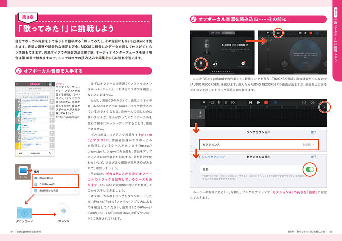 ▼機能が多いGarageBandの中で、「何がどこにあるか?」を作業の流れに沿って丁寧に解説しています。