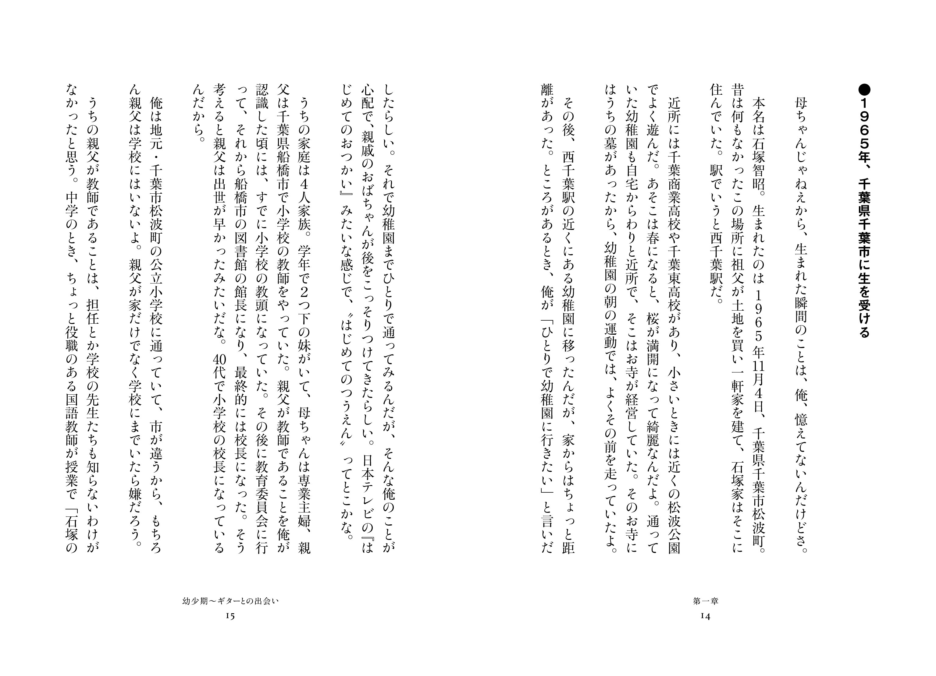 1965年、千葉県千葉市に生を受ける/夢中になって遊んだスーパーカー消しゴム/教え子を通して見た、教師としての父親/命の危険さえもあった!? 通称"そば事件" /中学校へ進学。選んだ部活はテニス部/俺たちは本当にバカの集まりだった/洋楽ロックとギターとの出会い/突然の父親の死。そして憧れだったエレキ・ギター