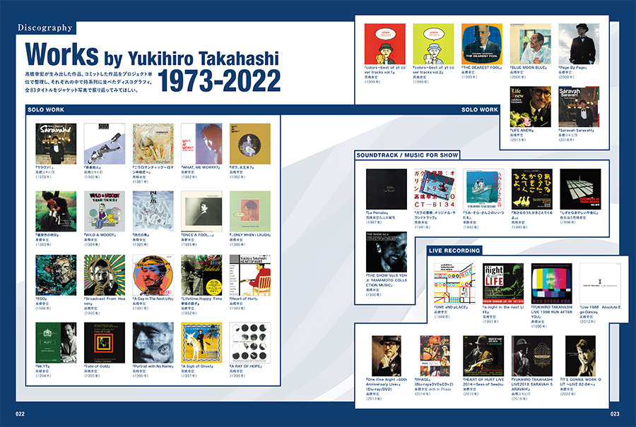 ▼1973~2022年の高橋幸宏ワークスを総覧できるディスコグラフィ。全83作のジャケット写真を掲載(新規記事)