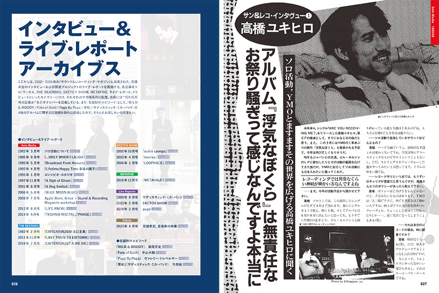 ▼画像左は、高橋幸宏の名盤制作に携わった方へのインタビュー。当時のレコーディングについてエピソードを語っていただいた。全4作分を収録(新規記事)