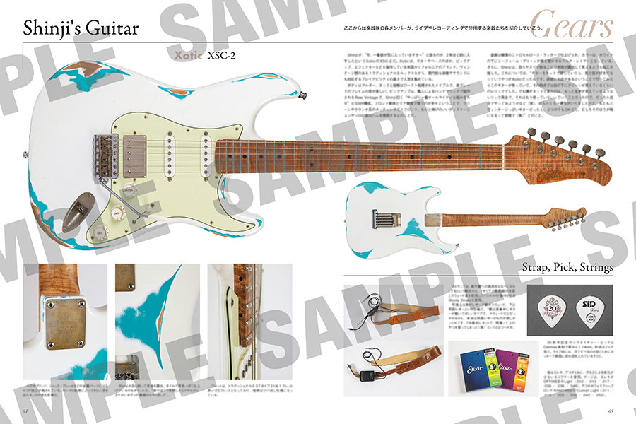 楽器隊の各メンバーが、ライブやレコーディングで使用する楽器たちを紹介