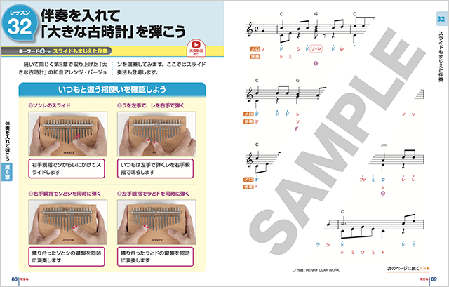 和音とは?/2音を同時に弾く/スライドで3音鳴らす/スライドで「きらきら星」を弾く/伴奏を入れて「海」を弾こう/伴奏を入れて「大きな古時計」を弾こう