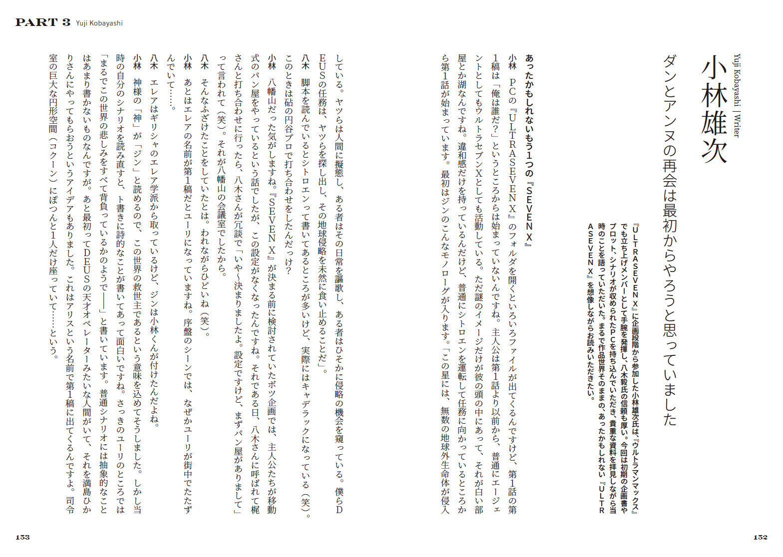 メインライターの小林雄次氏のインタビュー。八木監督との信頼関係に裏打ちされた、創作秘話は必読です