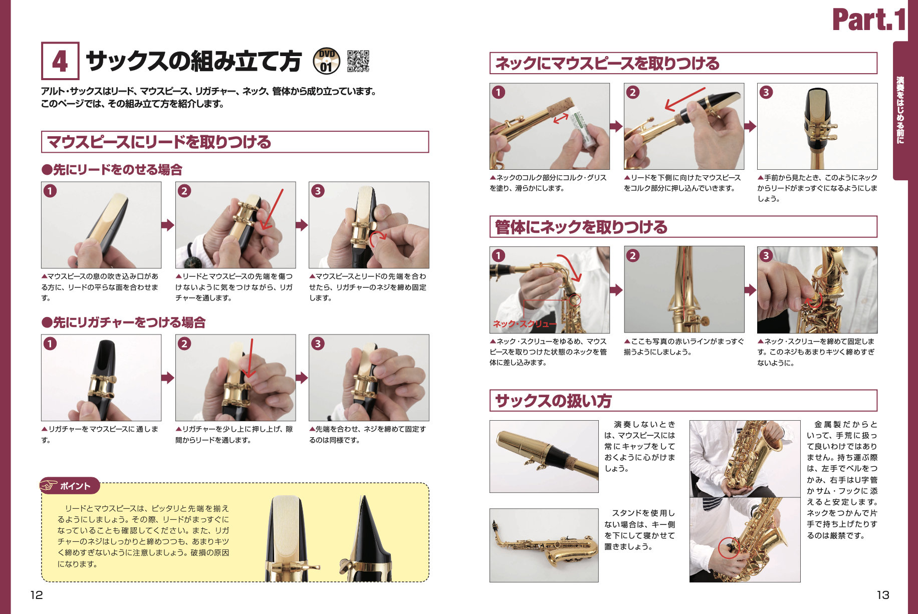 ◎サックスの扱い方からしっかり解説しています