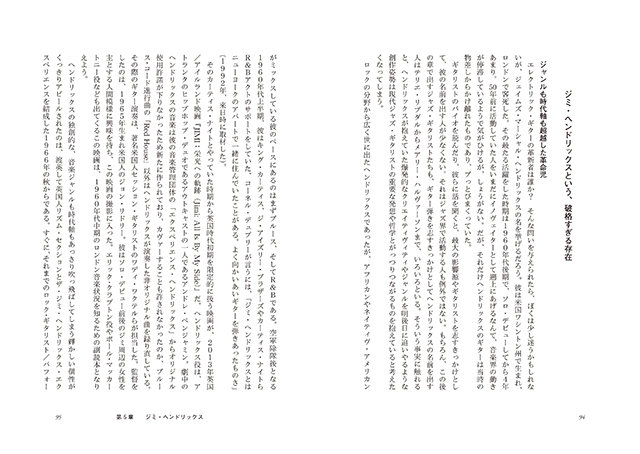 1960年代後期以降、ジャズという表現が多様化し指し示す意味が広がる過程において、エレクトリック・ギターはその変化を肯定する楽器として多用されることとなった。本書は「ギターは王道ジャズにおいて傍系の楽器であった」という視点から出発して、他ジャンル語彙も抱えた越境するギタリストがジャズの現代化を図る過程を描くものである。米国ブラック・ミュージック史におけるジャズの再考、マイルス・デイヴィスやオーネット・コールマンら先駆者たちに重用されていく過程、オルガン・ジャズにおける位置付け、ECMレコードによる重用、レディオヘッドからの影響などを通じて、これまでのジャズの正史では語られることのなかった視点で論じる。