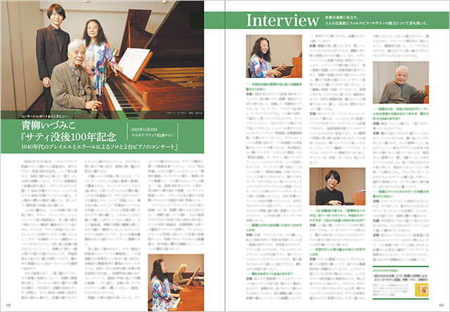・主宰の青柳いづみこ、ゲストの高橋悠治、佐藤元洋を迎えた、知的で遊び心に富んだ公演の模様に加え、サティ没後100年記念企画の実現に至った経緯や、出演者3人によるフォルテピアノとサティの魅力に関する貴重なインタビューをお届けします。