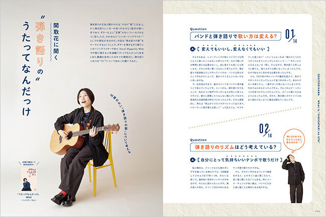 今回は"弾き語りの歌"をテーマにするということで、ギターを弾きながら歌うシンガーソングライターであり、Vocal Magazine Webでの歌に関する人気連載『うたってなんだっけ』をまとめた書籍を発売したばかりの関取花に、弾き語りにおける"うた"についてあれこれ聞いてみた。