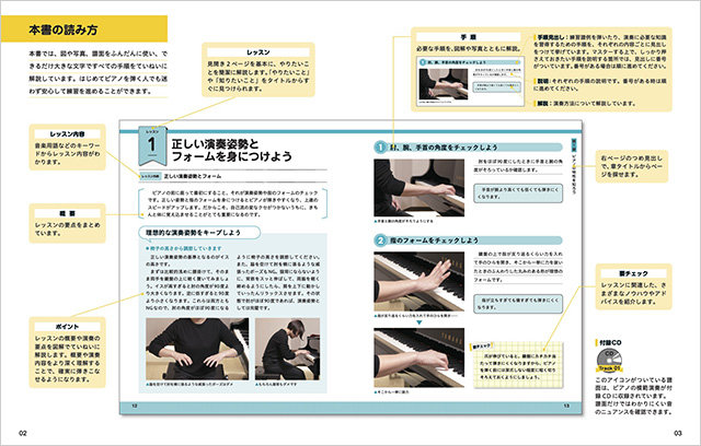 楽譜の読み方からピアノの弾き方までのレッスンを網羅したピアノ入門書