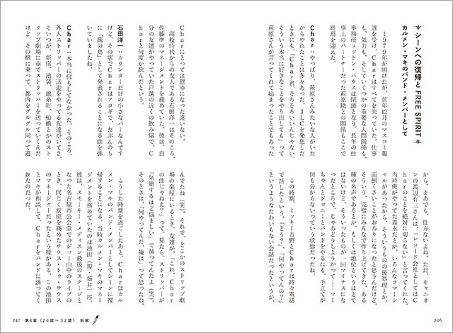 1976年「Navy Blue」でデビュー以来、常にギター・シーンの先頭を走り続け、今でも進化をやめない稀有なギタリスト、Char。2025年に古希(70歳)を迎えるのを記念して初めての評伝を刊行する。本人をみっちり取材するのはもちろんのこと、活動のタームごとに関わってきた重要な人物を多数取材し、Charにとっての"相対者"の発言と対比しながら、その実像を多面的に描いていく。取材対象者は、実兄の眞人、元マネージャーの長尾哲士、江戸屋代表の石田洋一、泉谷しげる、金子マリ、クリス・ペプラー、佐藤準、JESSE、トミー・スナイダー、仲井戸"CHABO"麗市、鳴瀬喜博、古田たかし、布袋寅泰、ミッキー吉野、山岸潤史、ロバート・ブリルなどなど。あらゆる歴史には当事者の数だけ視点があるが、それらを交えながら日本のロック史にCharという稀代のミュージシャンを位置付ける。これはよくある自伝でもモノローグでもなく、壮大なドキュメントである。