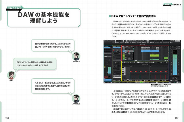 の3ステージにわたり、知識ゼロから1曲作り上げるまでのフローを解説しています。