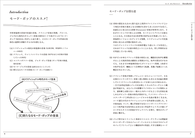 演奏の自由と楽しさを追求するジャズ的な「モード」ではなく、あくまでポップスの作曲手法のひとつとして「モード」をとらえ、そのノウハウを伝授する世界初の書籍。いわば「誰でも作れるモード・ポップのマニュアル」が本書です。